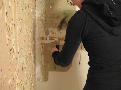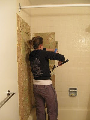 Then younger sister and I went at it last weekend, knocking all the tiles off the shower wall…