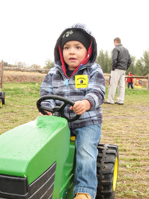 Luckily we waited it out, so we managed to get a good hour and a half at the farm. We took a ton of pictures {my final count was 135}… we did the farm animal tour, the jumpy castle, the train ride, had some delicious apple fritters, and capped the trip off by picking out a pumpkin.