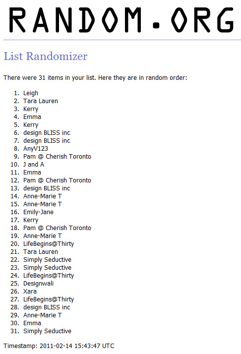 Thanks once again to everyone who entered, and who took the time to tell friends and tweet about the giveaway!